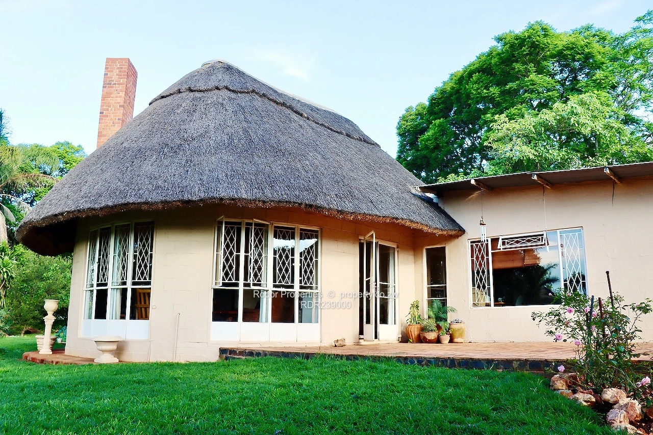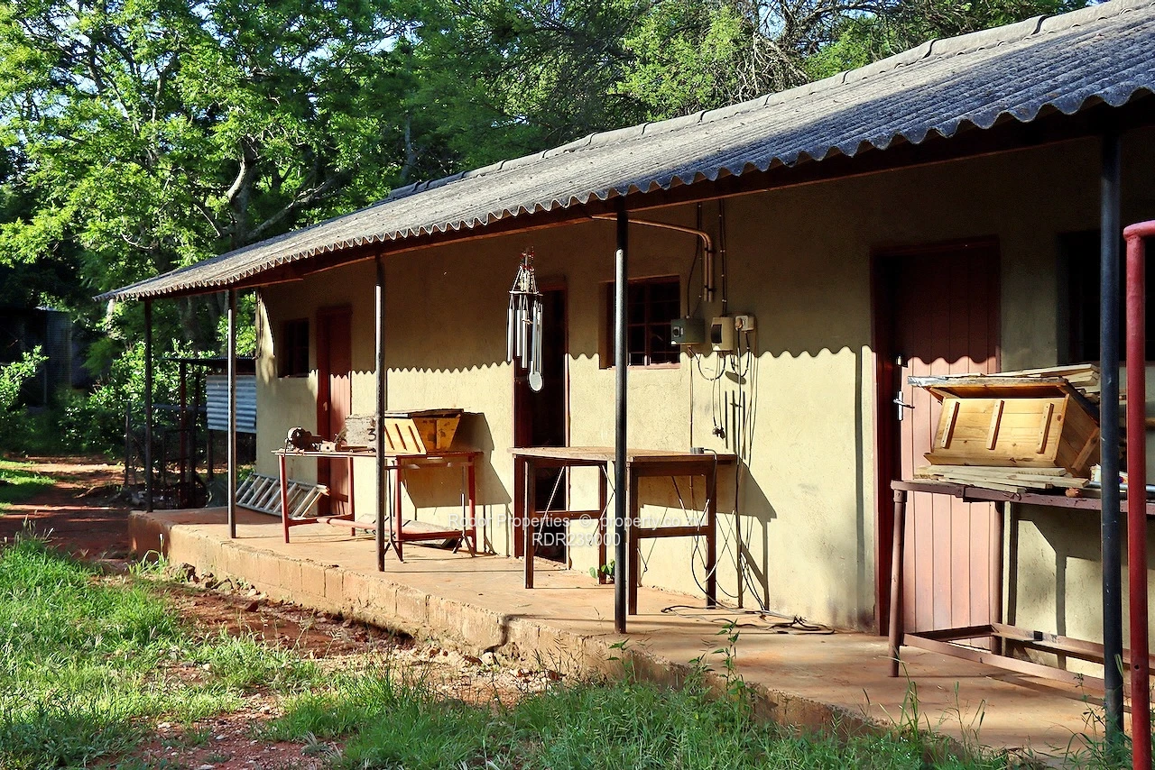 *RODOR* An upmarket jewel of a property in Worringham. There are 4 homesteads (2 three bedroom and 2 one bedroom), each with fitted kitchens and lounges. The property is on 25 acres with a seasonal dam, numerous chicken runs, pig stys, goat kraal and fields ready for irrigation. A good borehole allows for market gardening, picturesque gardens, a large home vegetable garden, and the sparkling swimming pool. Also included are storerooms, a 12 Kva housed generator, 9 carports, sheltered wood stove with braai, water tanks, 10 staff quarters, senior staff cottage, a guest cottage, and the property is fenced and gated.