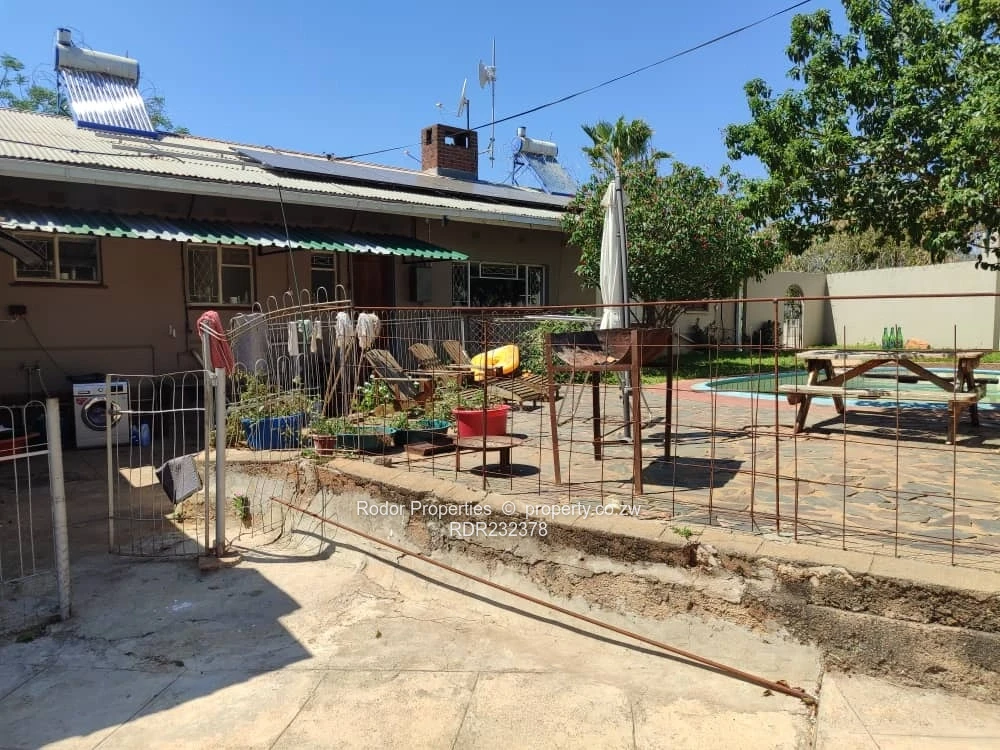 *RODOR* Charming Family Home in Gwanda. Discover your new residence in the heart of old low-density Gwanda! This renovated brick under iron home, nestled on a generous 1429 sqm, offers a blend of comfort and modern amenities. Key Features: Spacious Living: Enjoy three bright bedrooms, a cozy lounge/dining room with a charming fireplace, and a dedicated study perfect for remote work. Well-Appointed Facilities: Two bathrooms and a functional kitchen cater to all your family needs. Versatile Space: Additional quarters include a garage, staff accommodation, and a delightful granny flatlet, ideal for guests or rental income. Outdoor Retreat: Dive into your private swimming pool, surrounded by a secure wall and gate for peace of mind. Eco-Friendly Extras: Benefit from a solar system, solar geysers, a water tank, and the comfort of an air conditioner.