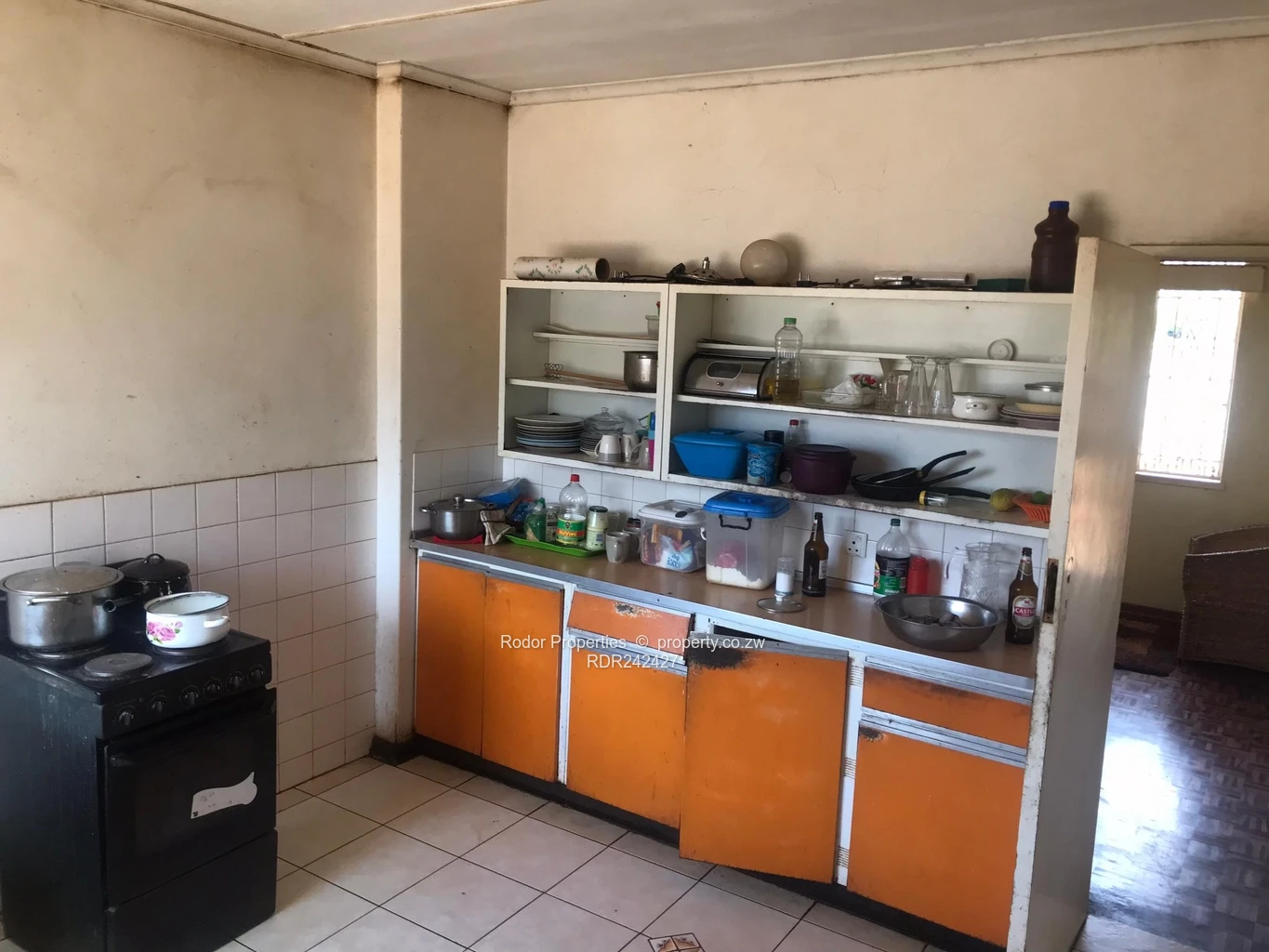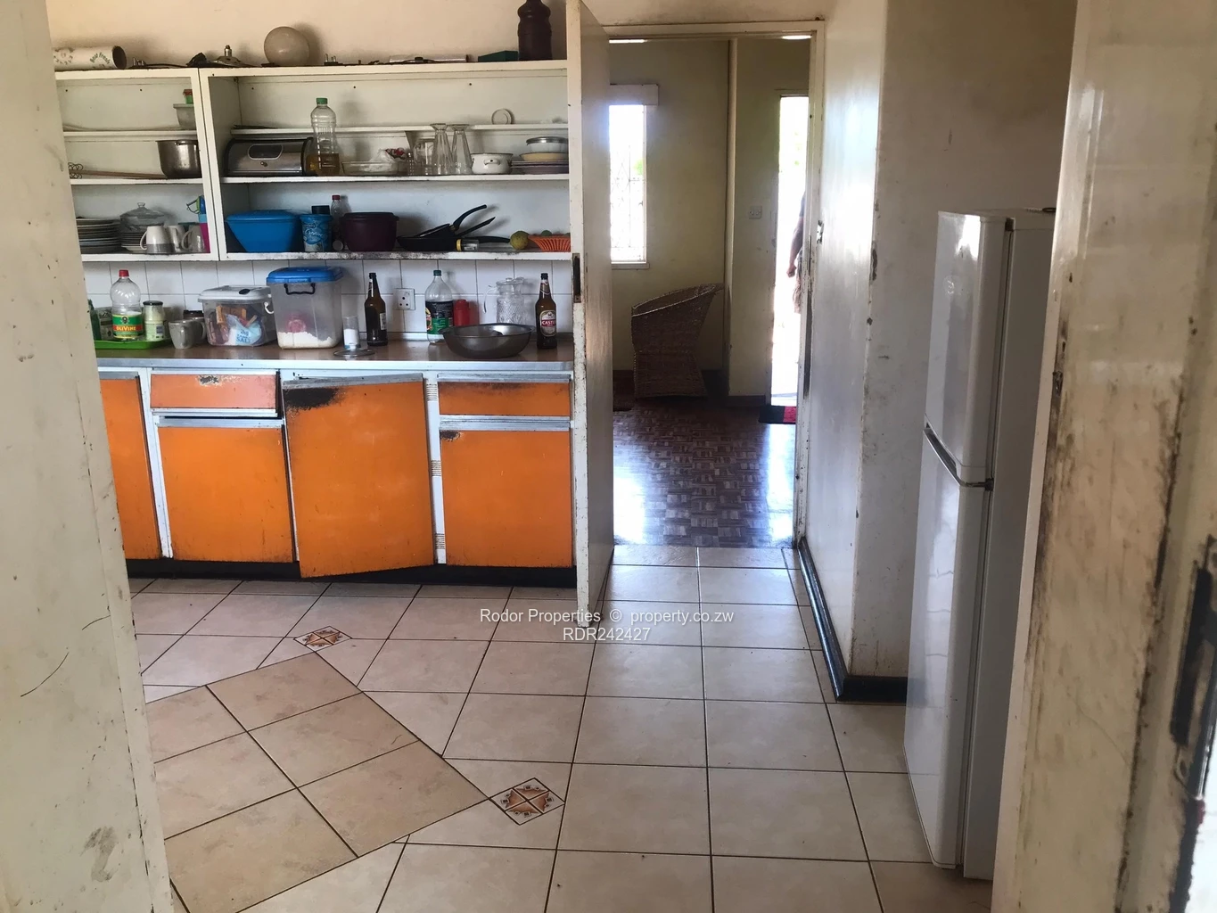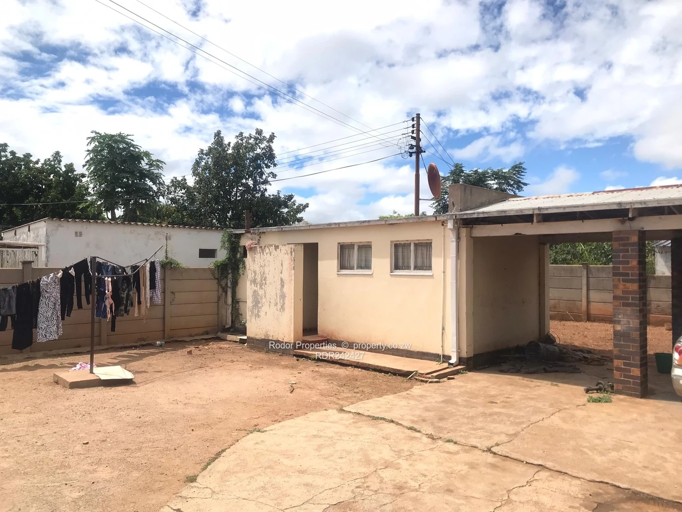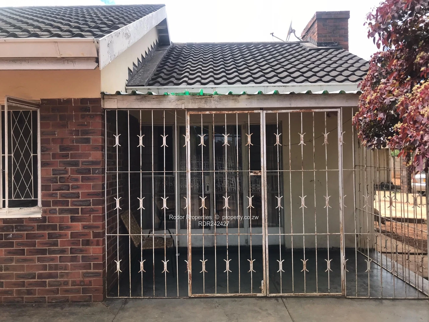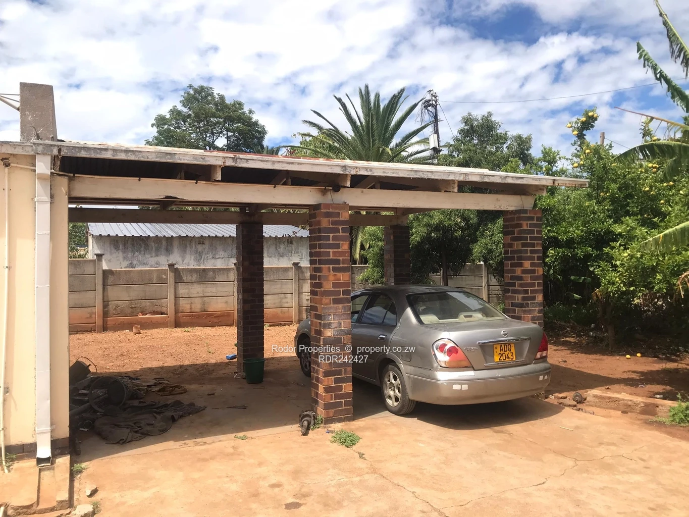 *RODOR* A a brick under tile corner stand house with 3 bedrooms with built in wardrobes, family bathroom, separate toilet, lounge with fireplace, dining room, fully fitted kitchen, veranda, double car port, staff quarters with shower and toilet, paved driveway, an abundance of fruit trees around the yard, walled with a pedestrian and main gate.